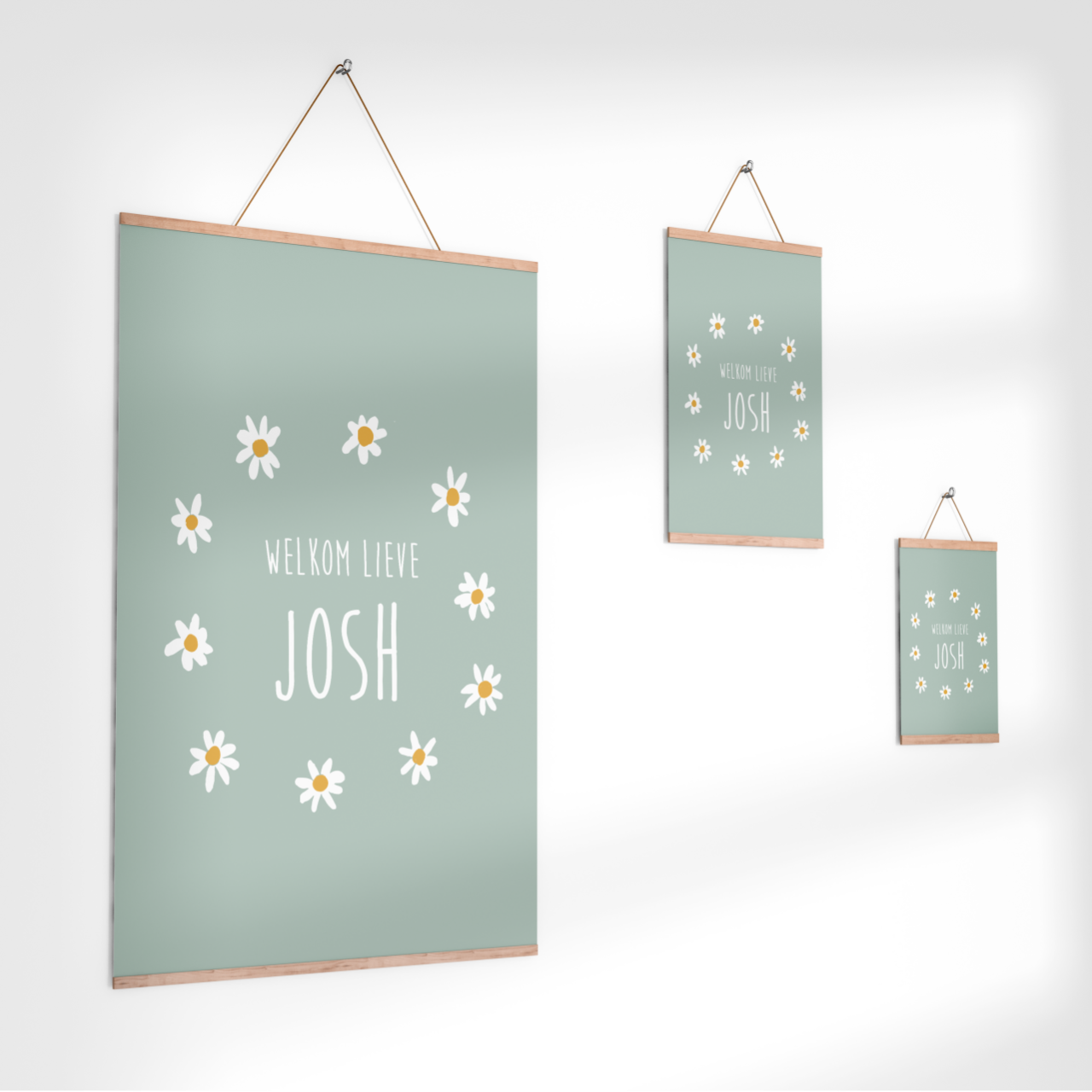 Op zoek naar een geboorte aankondiging omdat jullie baby is geboren? Dit schattige groene geboortebord met madeliefjes verwelkomt jullie baby! Het raambord is eenvoudig te bevestigen door middel van plakstrips of zuignappen. Bij dit geboortebord kun je ook een bijpassende geboorteposter bestellen.
