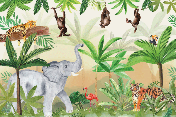 Het leukste behang voor de kinderkamer shop je bij Raambordshop! Wil jij de babykamer of kinderkamer een jungle thema geven? Met dit jungle dieren behang tover je elke kamer binnen eenhandomdraai om!