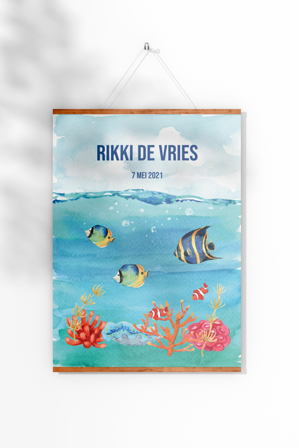 Geboorteposter diep in de zee